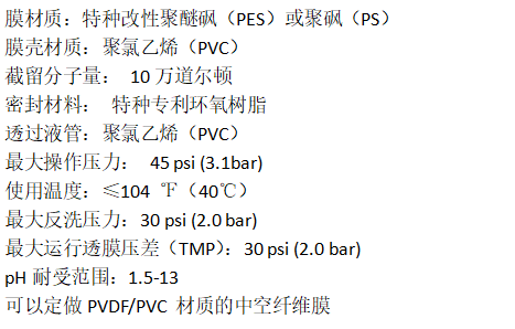 中空纖維膜絲具有親水性強、強度高、通量大、抗污染能力強、耐氧化性高使用壽命強組合式端蓋結構,有效防止膜組件使用過程中的端蓋破裂問題.
