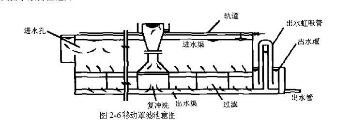 濾池被分隔成細長的格間,過濾時水由上向下流過格間.濾過水流出水位大體保持一定,隨著過濾阻力增大,池內水位逐漸上升.