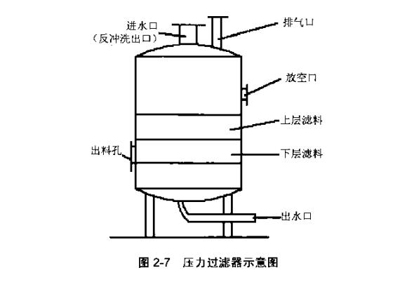 壓力濾池是一個承壓的鋼罐,內部構造與普通快濾池相似,在壓力下工作,允許水頭損失可達6?7m.進水用泵直接抽入,濾后水壓力較高,??芍苯铀偷接盟b置或水塔中.