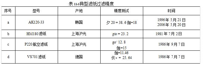 棉木紙漿濾紙過濾精度最高也在lOμm左右。很少高于8μm表11-3列出國內外部分典型型號濾紙過濾精度測試結果。